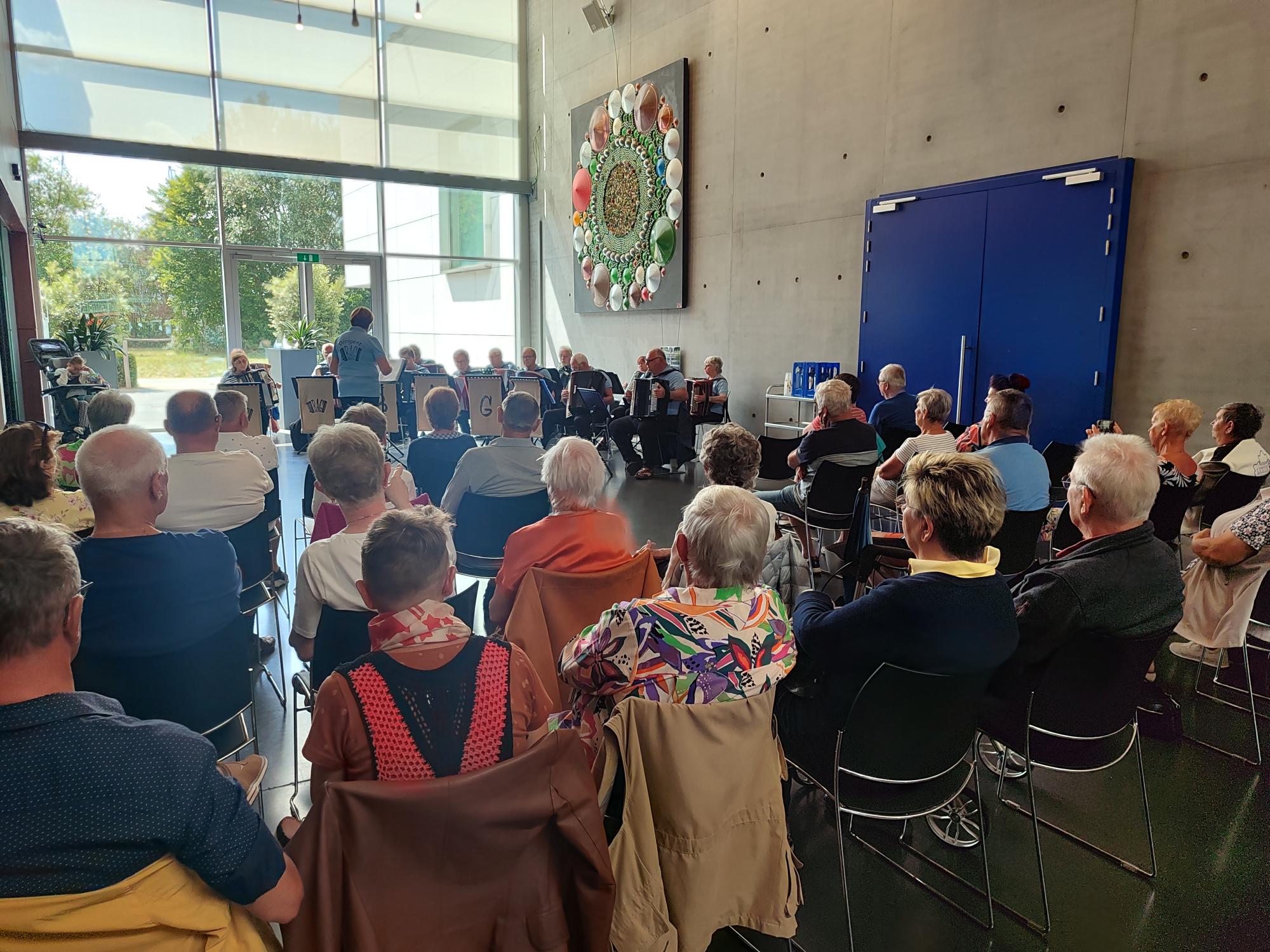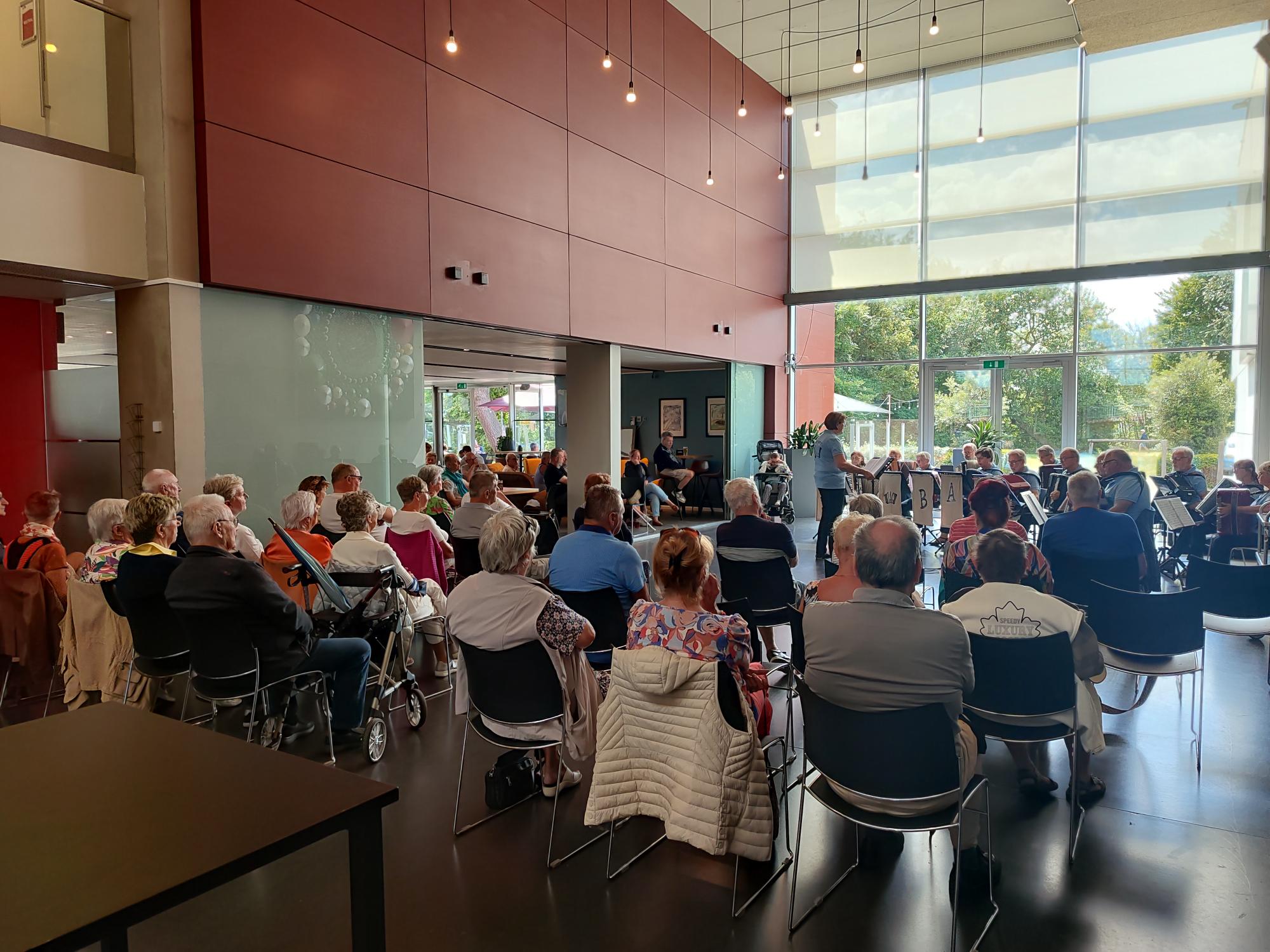 Wat een enthousiast publiek! Dat motiveert de muzikanten die prachtig de nieuwe stukken heeft gebracht!
