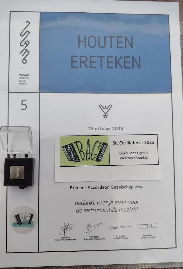 Een aantal leden kregen ‘ereteken’ met pin voor minimum 5 jaar lid bij BAG vzw.